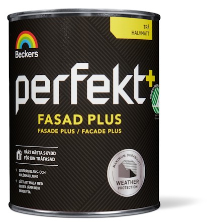 Perfekt Fasad Plus är vår bästa täckfärg för träfasader. Den är lätt att måla med, torkar snabbt och ger suverän glans och kulörhållning över tid och maximalt skydd för träfasaden. Helt enkelt perfekt! Nu är vår bästa täckfärg för träfasader ännu bättre! Perfekt Fasad Plus har suverän kulörhållning över lång tid och ger träfasaden maximalt skydd. I system med Beckers Primex Grundolja Trä Plus och Primex Trägrund Plus motverkar den såväl smutsupptagning som svartmögel på färgytan. Perfekt Fasad Plus har god utflytning, torkar snabbt och kan målas på de flesta tidigare målade ytor.